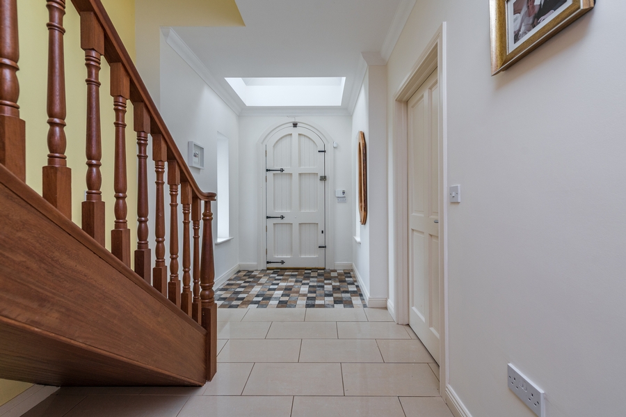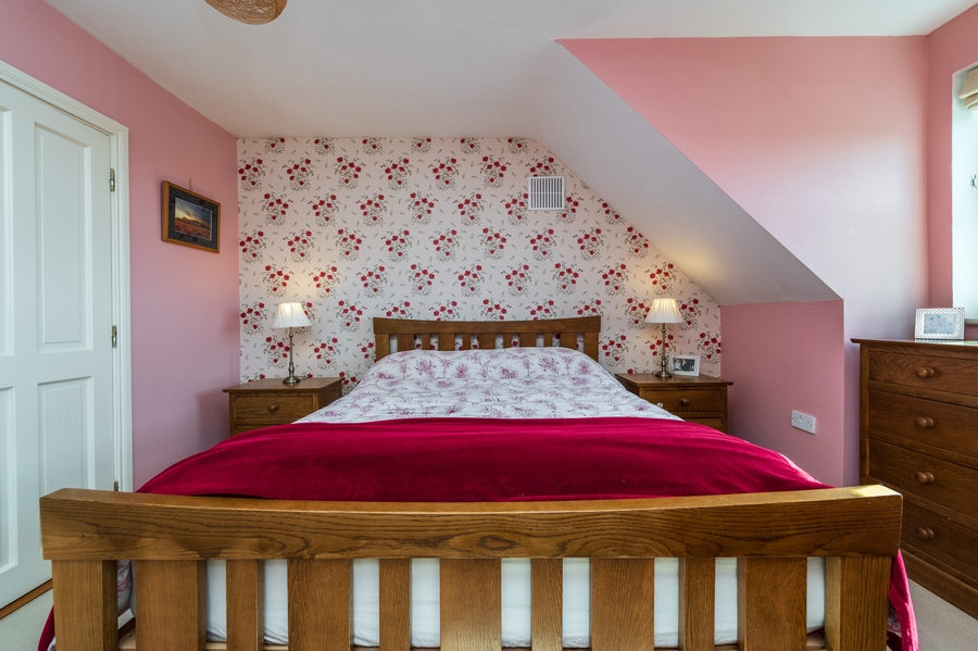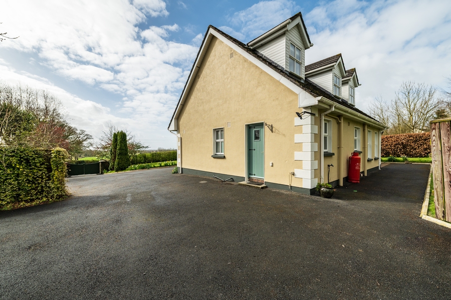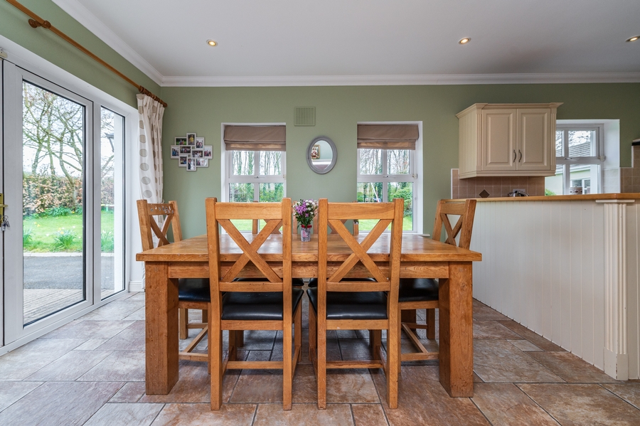 A tarmacadam driveway leads to a spacious detached garage, complete with additional overhead storage accessed via a ladder offering excellent practical space. This is a rare opportunity to acquire a truly attractive family home in a peaceful rural setting while still benefiting from excellent connectivity to nearby amenities.