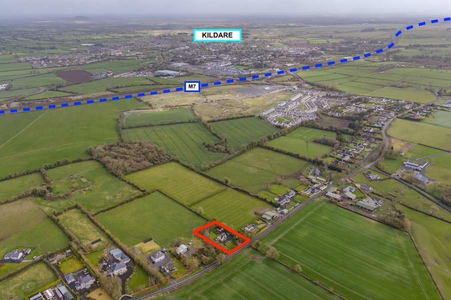 Situated on an elevated and private site just approximately 2km from Kildare Town, “The Lodge” offers an exceptional blend of rural tranquility and everyday convenience. This architecturally designed home has been constructed to a high standard and presents generously proportioned accommodation, ideal for modern family living with flexible use throughout.